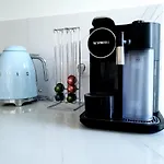 2Bd Designer Apt. 134M2 In Strassen的房间内有烤箱,厨具和洗衣机. Terminus巴士站距离公寓不远,步行只需5分钟就到了.